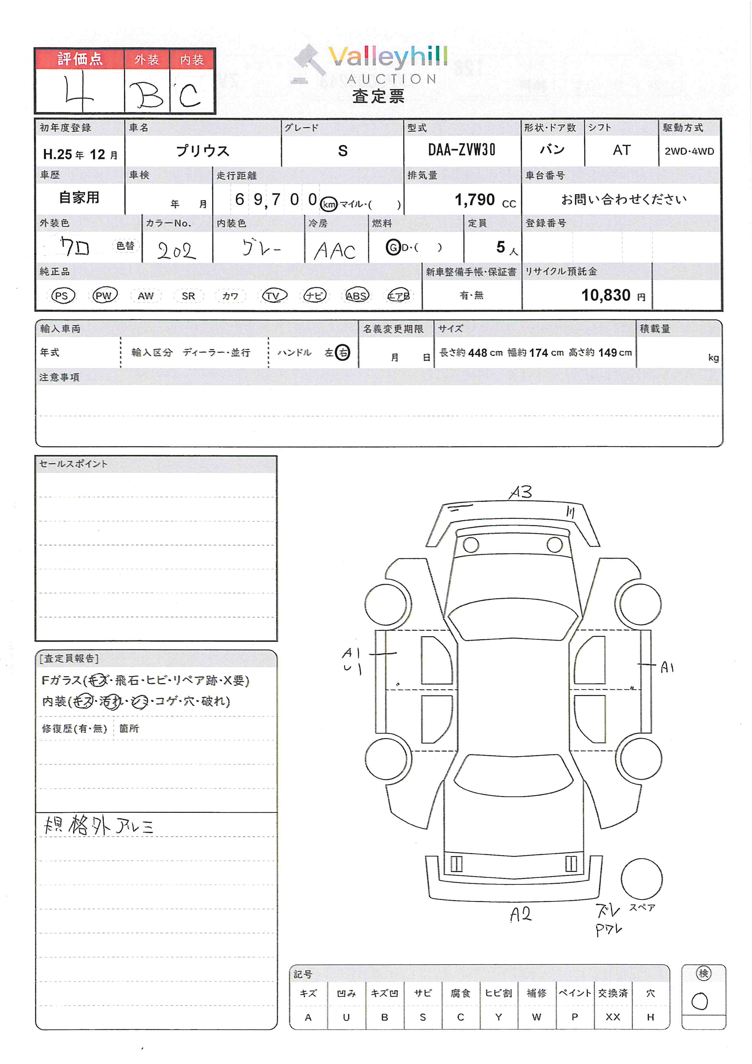 商品No. 5530 メーカー トヨタ 車名 プリウス 型式 DAA-ZVW30 車両タイプ 小型 形状 乗用車 評価 4評価について 現状販売 - 年式 2013年 燃料 ガソリン 排気量 1790cc 走行距離 69700km 車台番号 ZVW30-043**** 原動機型式 2ZR-31M トランスミッション AT 保管場所 神戸 備考 最大積載量 車両重量 1350kg 車両総重量 1625kg 長さ(L) 448cm 幅(W) 174cm 高さ(H) 149cm 登録年月 2017年05月 製造年度 車両状態 稼働時間 車検期限 駆動方法 4x2 ハンドル 右 タコ年式 タイヤサイズ前 タイヤサイズ後 外装色 クロ 内装色 ドア 定員 5 備考 - エアバッグ運転席